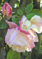 Both roses graced an arbor that I have often photographed. Dripping their great egg-shaped blooms down from on high, they've offered me great solace as I sat on the bench under the arbor. They will return to my garden, not there, but somewhere in my garden, one day. For now I will search out others that have not had the chance to lift their beauty above me, though it will take a few years.